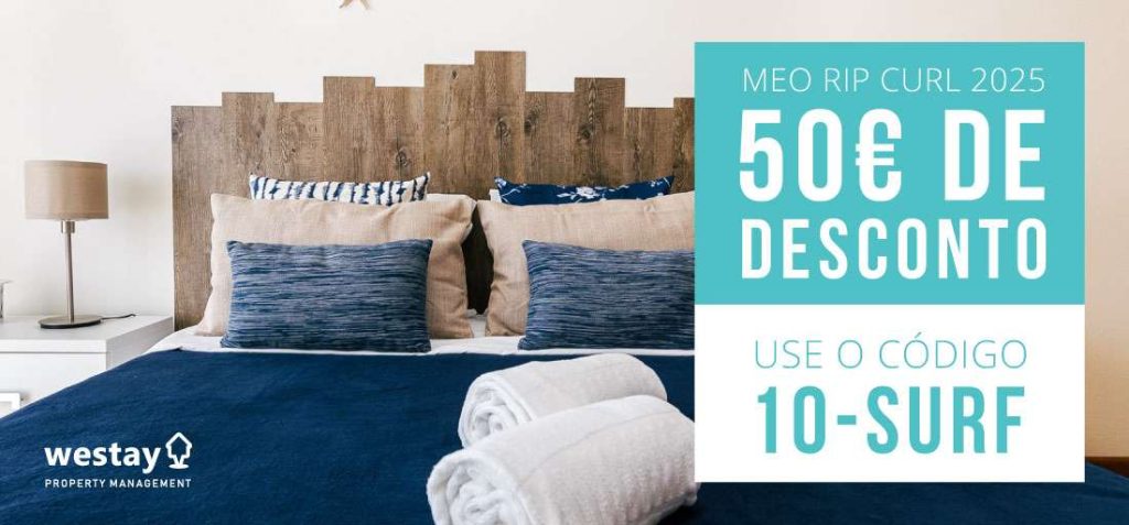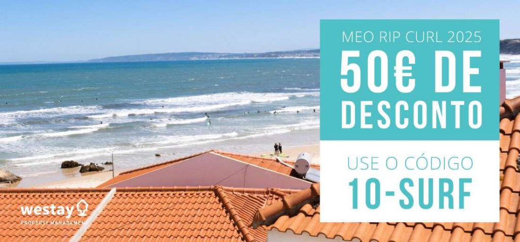 Além disso, se está a planear a sua estadia em Peniche para o MEO Rip Curl Pro Portugal, aproveite a nossa campanha especial! Ao utilizar o código “10-Surf”, recebe um voucher de 50€ de desconto para estadias iguais ou superiores a 7 noites em qualquer alojamento em Peniche, ou nos arredores. Não perca esta oportunidade de aproveitar o melhor do surf e do turismo em Peniche!